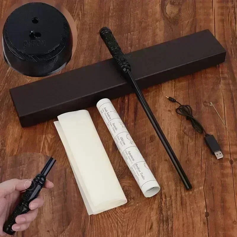Props include: 1 wand, smart USB charging cable, auxiliary hook, accessory bag (choose whether to increase the button according to personal preference), spell watch, gift box, wand protection bag, gift box transparent protection bag.