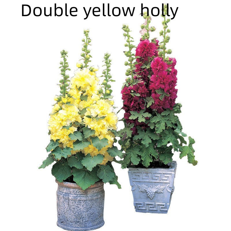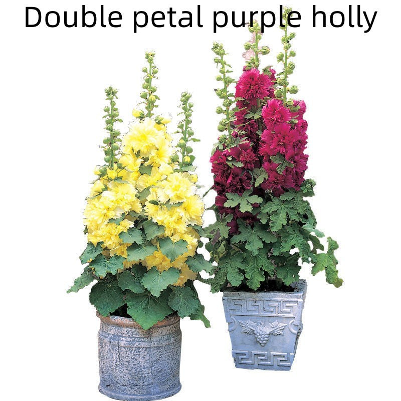 Plumpness: 30 double purple hollyhocks, 30 double yellow hollyhocks, 30 double red hollyhocks, 30 double white hollyhocks, 30 double pink hollyhocks, 30 double dark red hollyhocks, 100 double mixed color hollyhocks, 30 broken pink hollyhocks, 30 broken red hollyhocks, 30 broken white hollyhocks and 30 broken yellow hollyhocks.